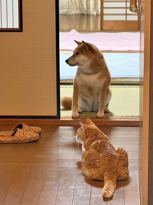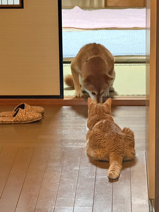 さり気なく近寄って「鼻コッツン」したり、そばを横切ったり。