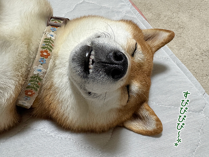 閉じた目がゆる~くカーブしているせいで、いつも笑っているかのような寝顔です。