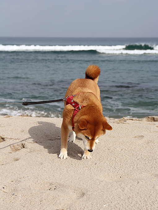 が、なんとなく怖さを覚えたのか波打ち際には近づこうとしません。